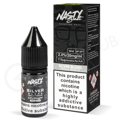 Silver nicotine salt e-liquid fuses savoury and dessert notes, for a contrasting taste. The rich and nutty notes of tobacco are countered by a sweet vanilla custard on exhale, which creates a smooth finish.